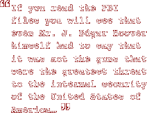 As Roger states in the film, "if you read the FBI files you will see that even Mr. J. Edgar Hoover himself had to say that it was not the guns that were the greatest threat to the internal security of the United States of America; it was not the guns, it was the Free Children's Breakfast Program that was the greatest threat to the internal security of the United States of America. Grits. Now why was it the Free Children's Breakfast Program? It was the Free Children's Breakfast Program because the Free Children's Breakfast Program engendered a certain following on the Black community's part, a certain respect on the Black community's part. I mean, nobody can argue with free grits. So Hoover saw it as a kind of, he saw the Free Children's Breakfast Program as a kind of, what's the word he used? He said it was a kind of, look in the file, you'll see, he said it was a kind of infiltration. That's ridiculous isn't it? Infiltration? How are Black people, who are born and raised in the Black community, who live and work in the Black community, going to infiltrate their own Black community? If anybody's infiltrating I think its J. Edgar Hoover. |
